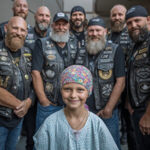 At precisely 7 PM, the deep rumble of 63 motorcycles filled the hospital courtyard. Engines thundered in perfect harmony for thirty seconds, then fell into silence. It…