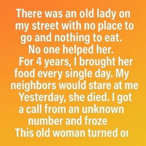 On Maple Street, there lived an old woman. To most, she was invisible—just another forgotten soul tucked away in the corners of life. She had no family…